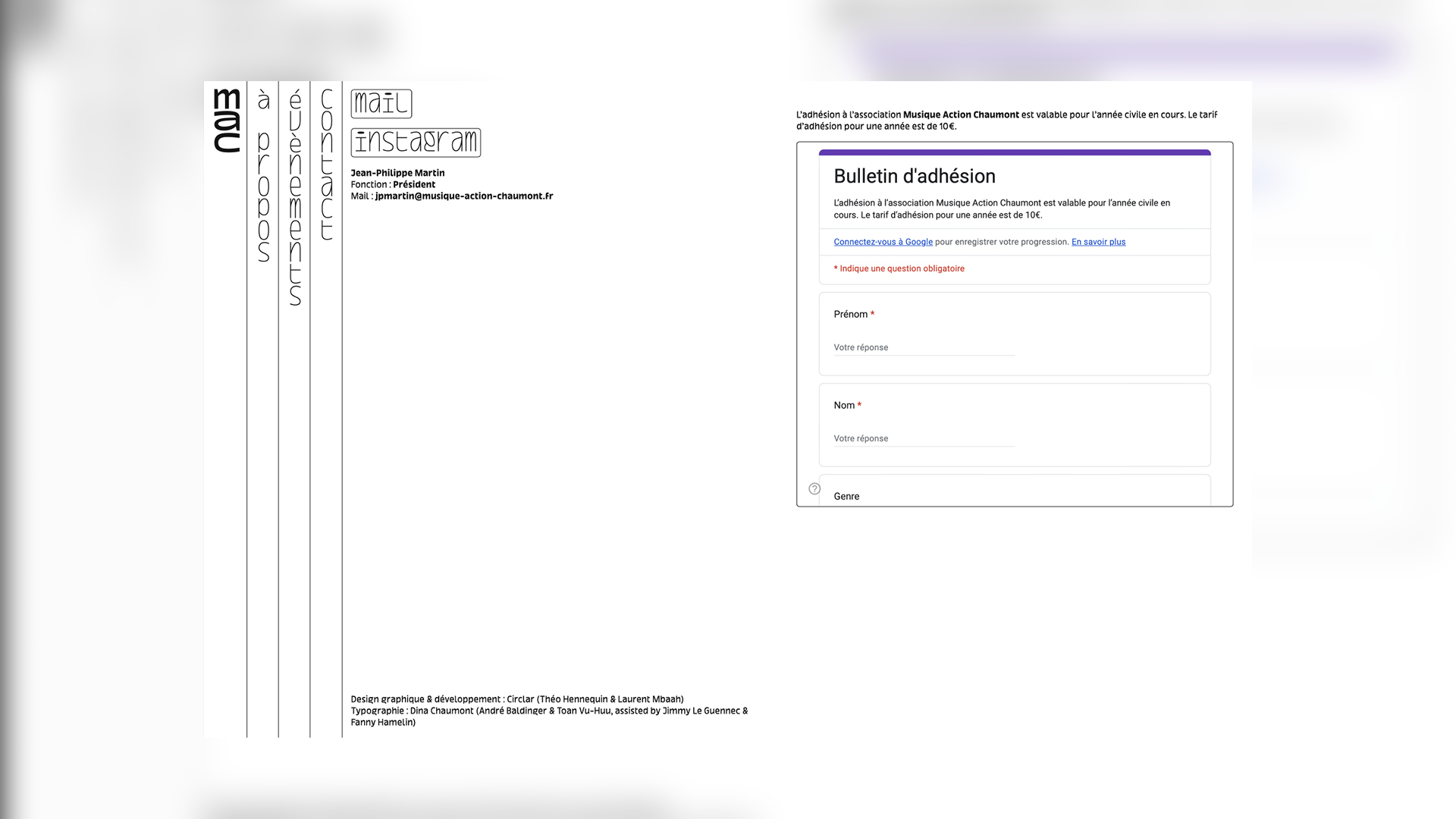 The Musique Action Chaumont logo is rooted in the locality, in this case Chaumont, by using the Dina Chaumont typeface, specially designed for the town's visual identity.