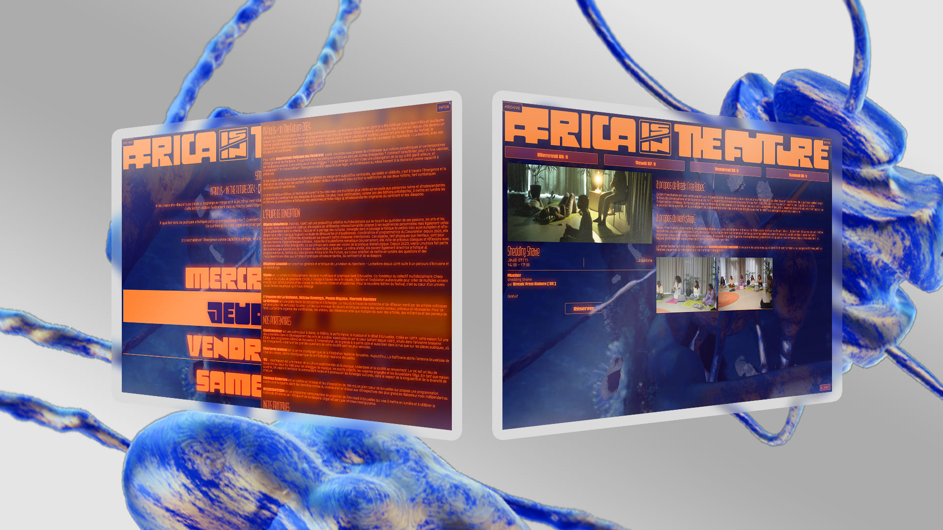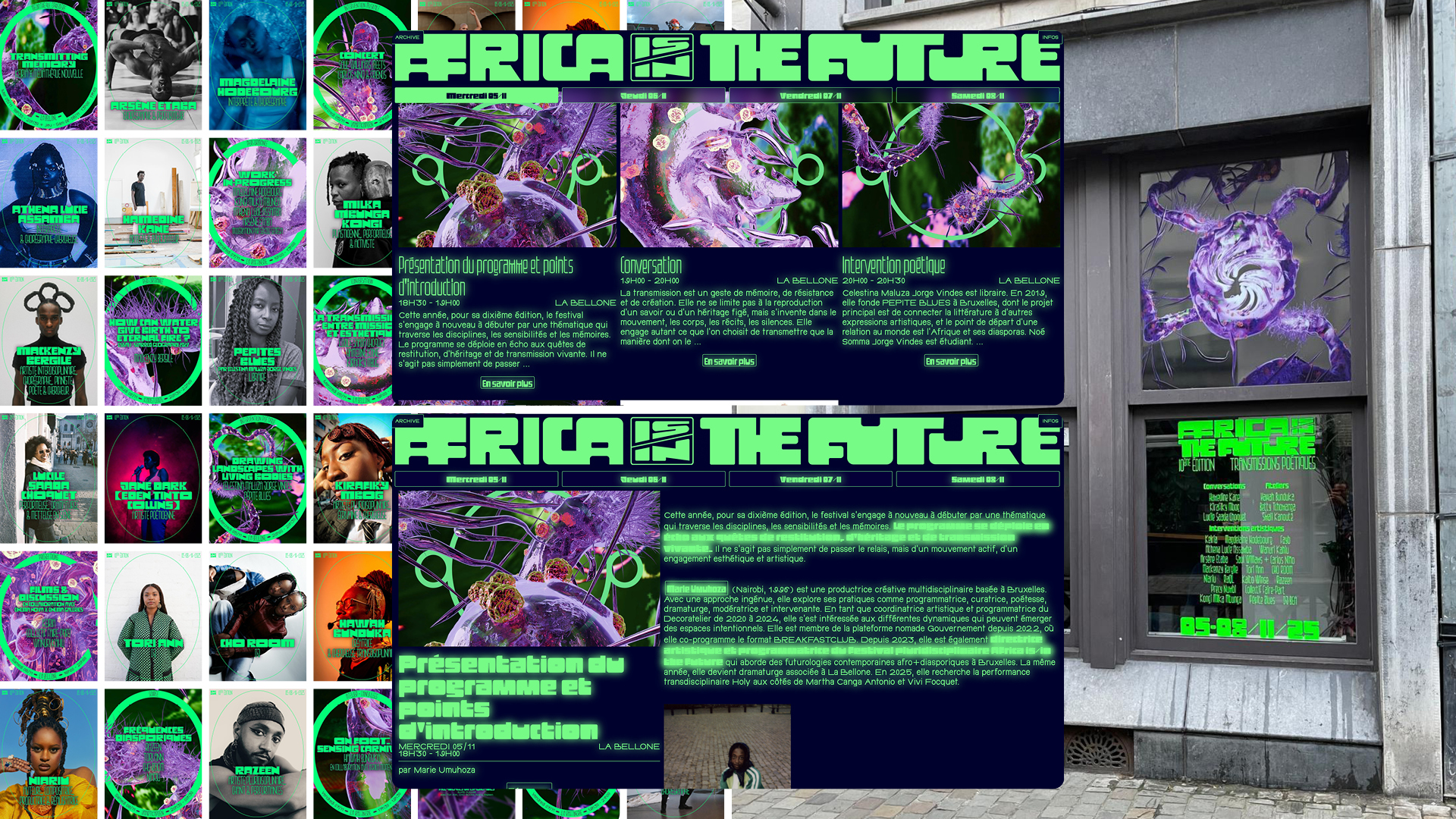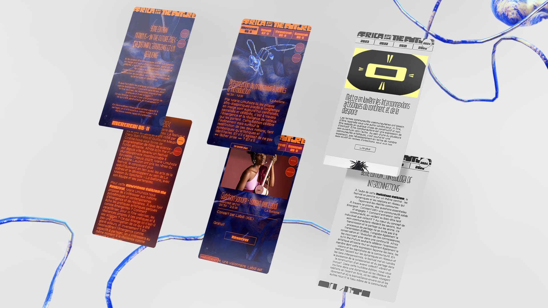 À travers ce prisme, des questions essentielles émergent : Comment bâtir une communauté solide et engagée ? Comment entretenir cette communauté, en veillant au bien-être tant individuel que collectif ? Au cœur du concept de soin communautaire résident les savoirs, leur transmission et le partage qui les anime. Ce processus de partage ne se limite pas à la transmission d'idées, il englobe également la conservation et l'évolution de ces connaissances, les inscrivant ainsi dans une continuité. Africa is/in the Future souhaite célébrer l'expression artistique africaine tout en explorant également la manière dont cette expression façonne les liens, les visions et les aspirations de la communauté. En mettant l'accent sur les dynamiques en réseaux et les liens interpersonnels, le festival met en lumière la puissance de la collaboration et du partage dans la construction d'un avenir collectif vibrant et inclusif. Dans cette huitième édition, nous vous invitons dans une dynamique où les réseaux de relations se tissent en toile, où les idées voyagent librement et où la bienveillance envers soi et les autres nourrit le tissu même de la communauté.