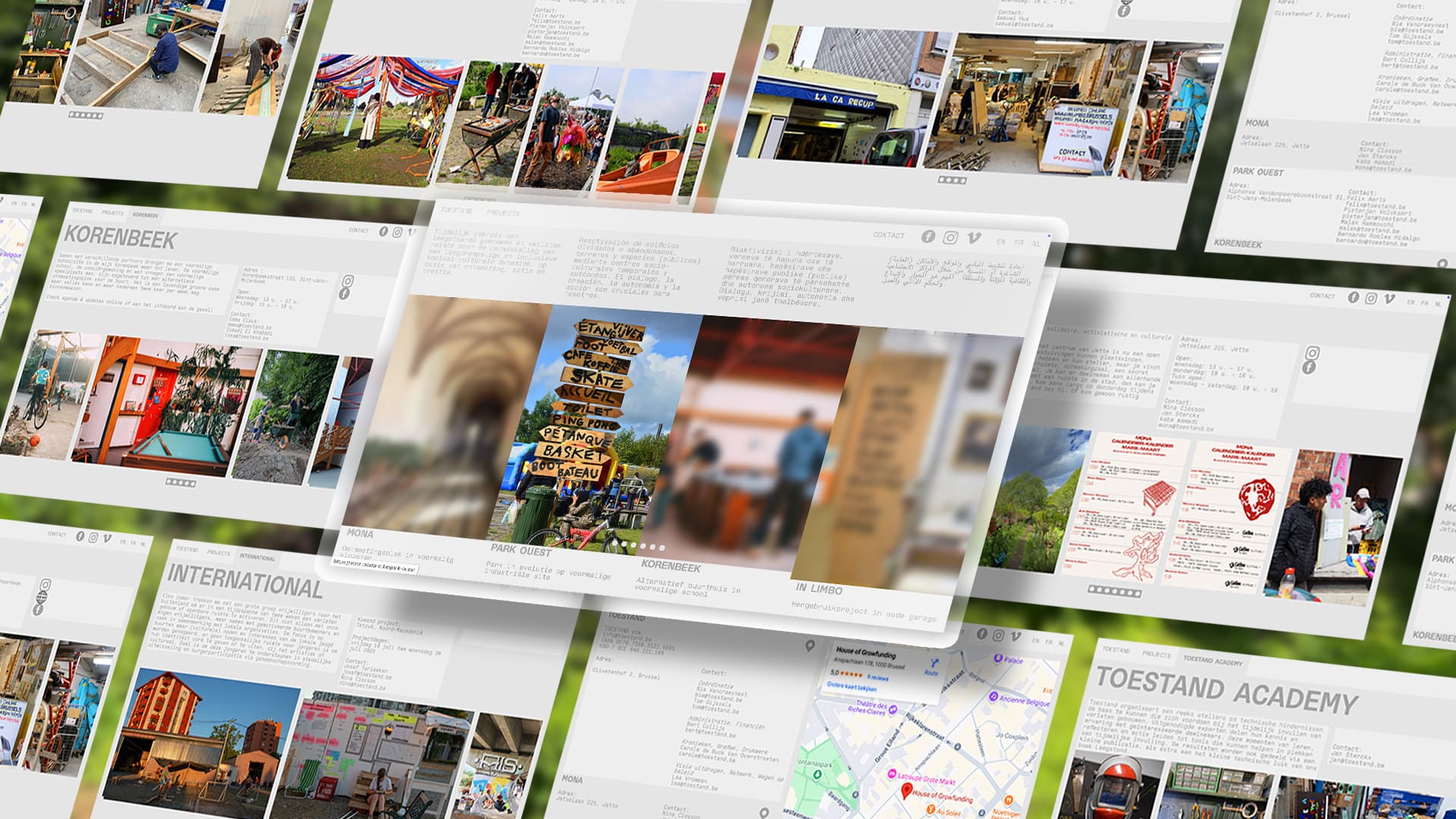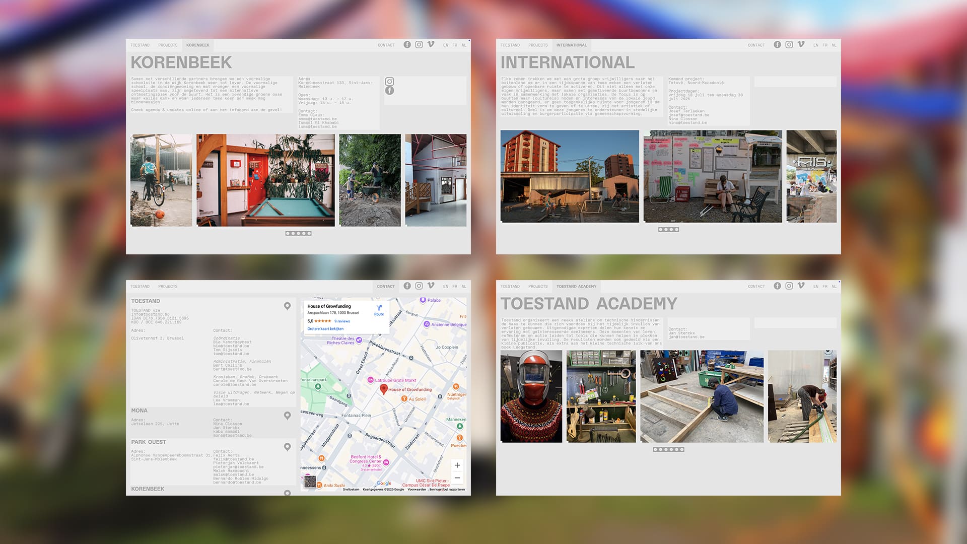 Toestand œuvre à la réactivation, par l’usage, de bâtiments abandonnés ou oubliés, de terrains et d’espaces (public) à l’aide de l’organisation de centres socio-culturels temporaires et autonomes. Toestand transmet les notions de dialogue, de création, d’autonomie et d’action.